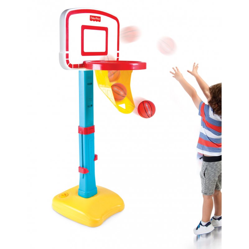 Od teraz Twoje dzieci pokochają grę w koszykówkę dzięki koszykówce Fisher Price Jump'n Dunk Basketball. Koszykówka jest szybka w montażu i posiada regulację wysokości, aby idealnie dopasowywać ją do wzrostu dziecka. Zestaw wyposażony został w duży pasek, na którym można zaznaczać wyniki a dla najmłodszych dzieci dołączono specjalny dodatek do koszykówki, dzięki któremu piłka zawsze sama wróci w stronę dziecka i umożliwi nieprzerwaną zabawę.