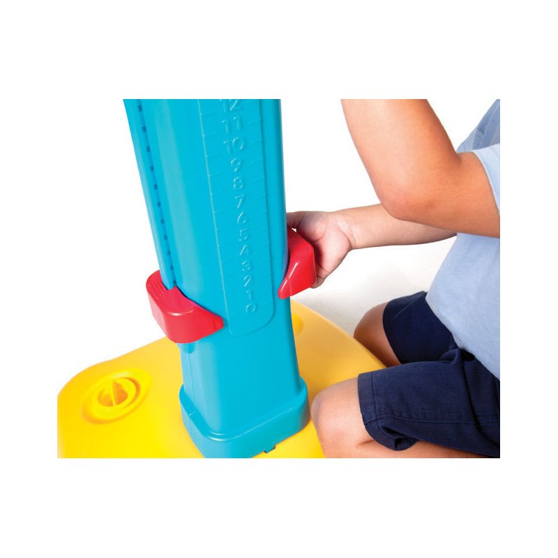 Koszykówka jest szybka w montażu i posiada regulację wysokości, aby idealnie dopasowywać ją do wzrostu dziecka. Zestaw wyposażony został w duzy pasek, na którym można zaznaczać wyniki.