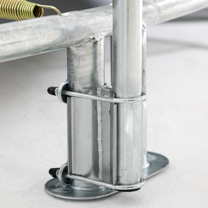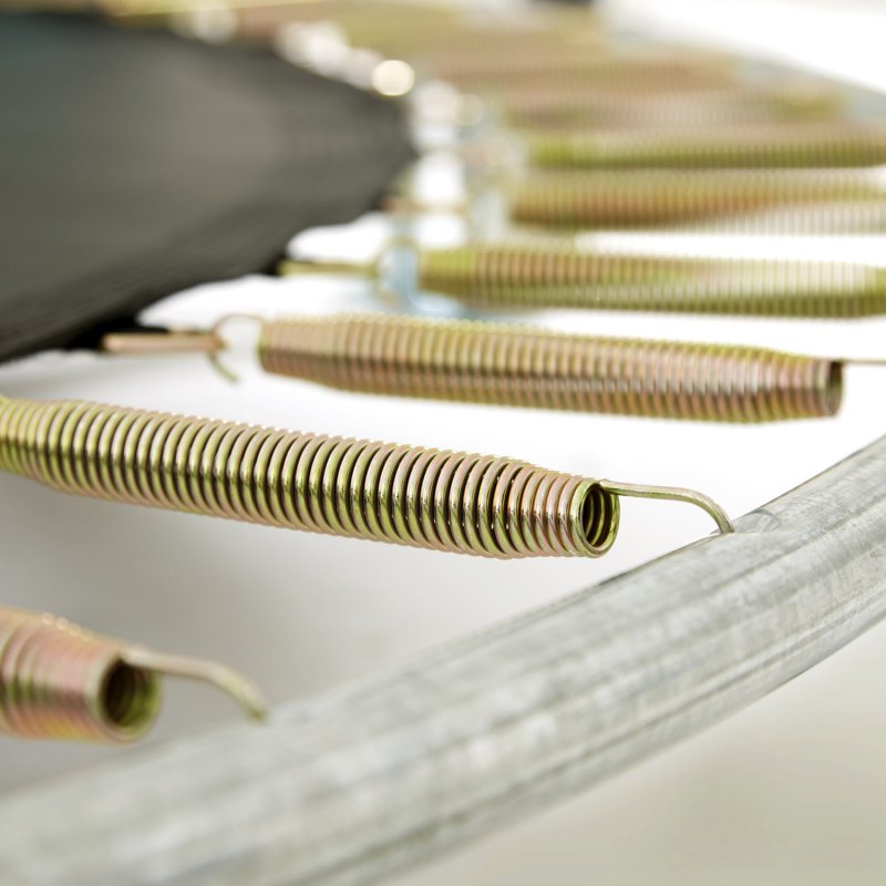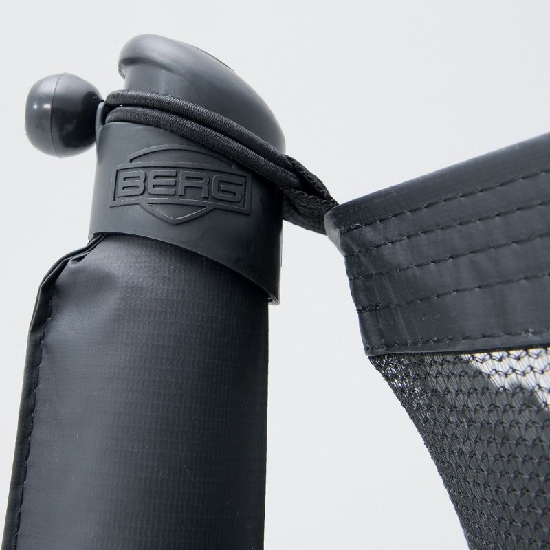 Co wyróżnia trampoliny Berg na tle innych producentów? Po pierwsze producent przeprowadza niezależne testy TUV, Intertek i AiB Vincotte oraz testuje odporność materiałów od warunków pogodowych. Krawędzie są idealnie dopasowane do maty, co zwiększa bezpieczeństwo i komfort skakania, a materiał z którego są wykonane jest odporny na promieniowanie UV i przemakanie. Konstrukcja jest jeszcze bardziej stabilna dzięki wzmocnieniu spawów ramy oraz zastosowaniu stalowych połączeń, które są zdecydowanie mocniejsze od plastikowych. Wszystkie stalowe elementy są odporne na korozję dzięki zewnętrznej i wewnętrznej powłoce z cynku. Do trampoliny jest dołączona samo zamykająca się siatka, która zabezpiecza przed wypadnięciem z obszaru skakania. Całość jest bardzo łatwa w montażu.