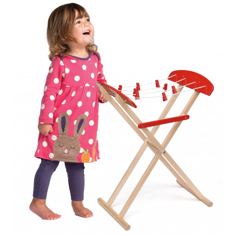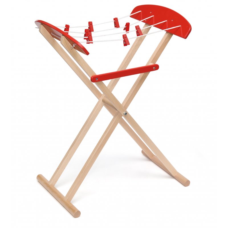 Drewniana suszarka do ubrań zaprojektowana została przez cenionego producenta zabawek drewnianych firmę Viga Toys dla dzieci od 18 miesiąca życia, idealna do domu i przedszkola.