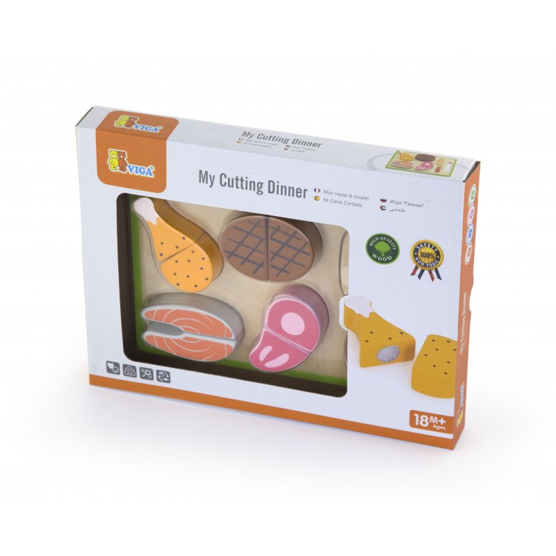 Bezpieczny i kreatywny Drewniany Zestaw obiadowy do krojenia na tacy składający się kawałków połączonych ze sobą na rzepy od firmy Viga to jedna z czołowych zabawek, która będzie służyła długo i zapewni Twojemu dziecku wiele lat ciekawej i kreatywnej zabawy. Kolorowy obiadek cieszy oko i zachęca do zabawy. Zabawka zapewni cudowną zabawę podczas każdego przyjęcia dla misia, laleczki czy koleżanki z przedszkola.