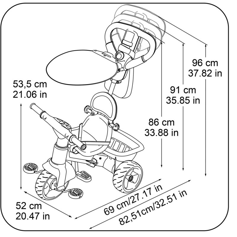 Trójkołowy rowerek Baby Plus Music 3w1 dla wymagających wyposażony został w moduł dźwiękowo świetlny. Rowerek trójkołowy przeznaczony jest dla dzieci już od 12 miesiąca życia a wraz z wiekiem dziecka istnieje możliwość dostosowania go do jego wzrostu. Wyprodukowana na podstawie najnowszych technologii oraz najwyższych norm bezpieczeństwa. Komfortowy rowerek trójkołowy od hiszpańskiego producenta zabawek firmy Feber.