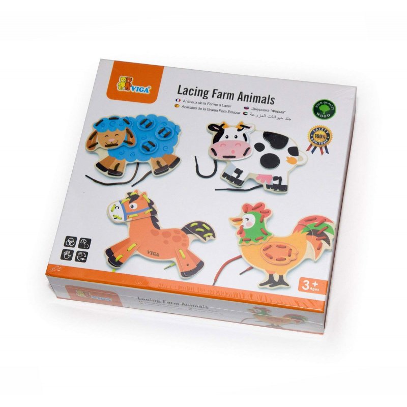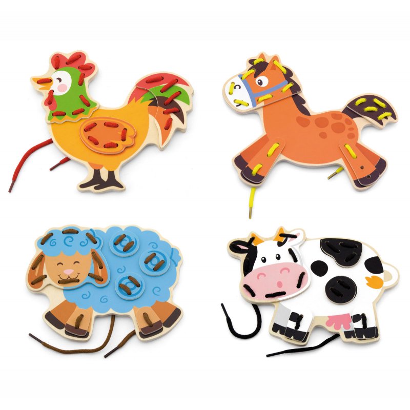 VIGA Drewniane Zwierzęta Sznurowanka Przeplatanka Układanka Nawlekanka