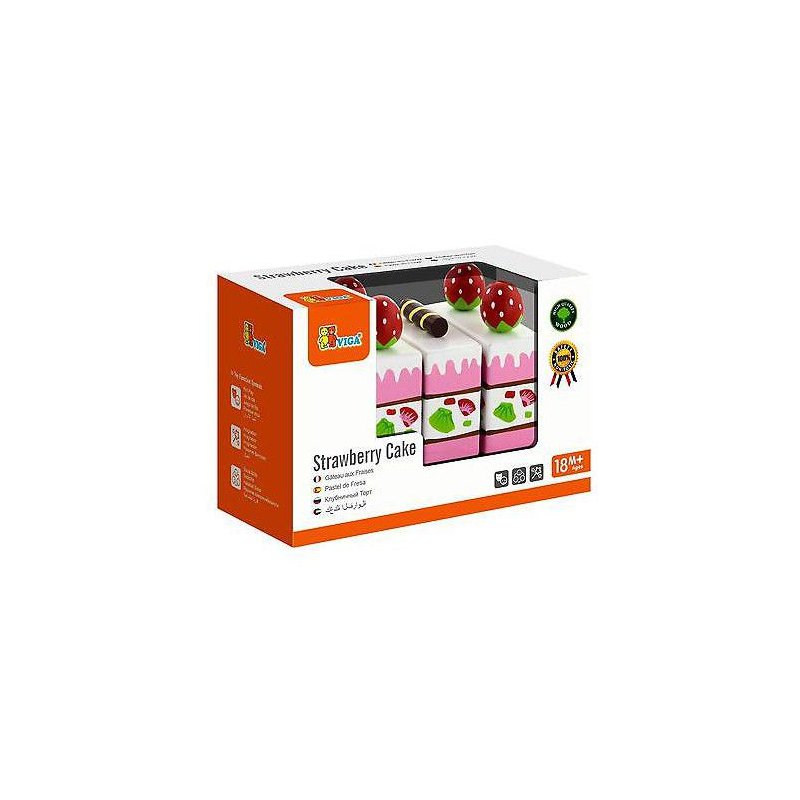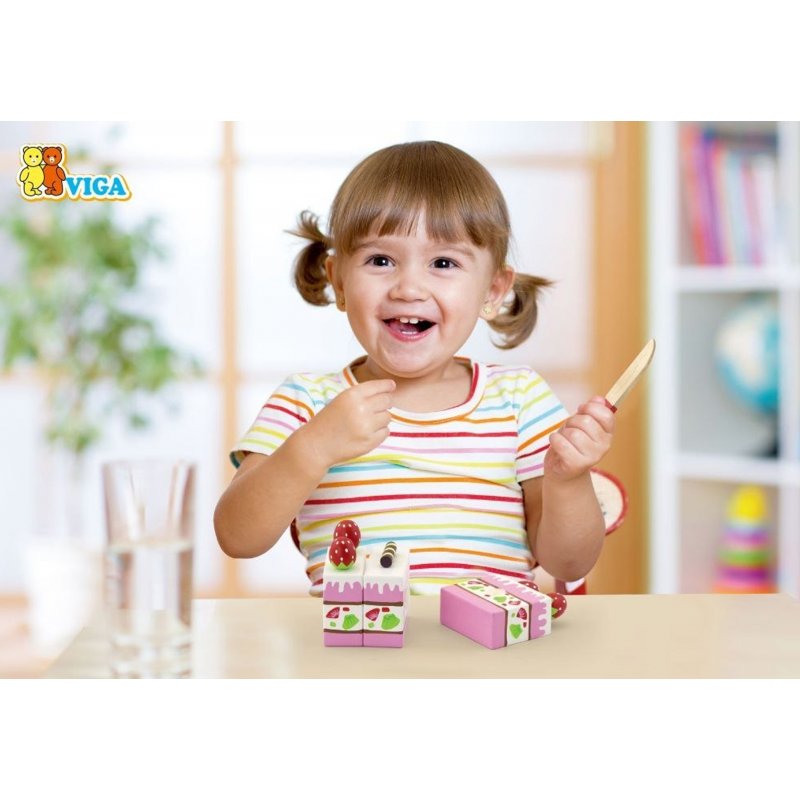 Pysznie wyglądające ciasto od firmy Viga będzie idealnym uzupełnieniem każdej dziecięcej kuchni i świetnie sprawdzi się podczas przygotowania przyjęć. Tort wygląda jak prawdziwy, dzięki czemu każdy maluch chętnie będzie się bawił odgrywając rolę cukiernika.