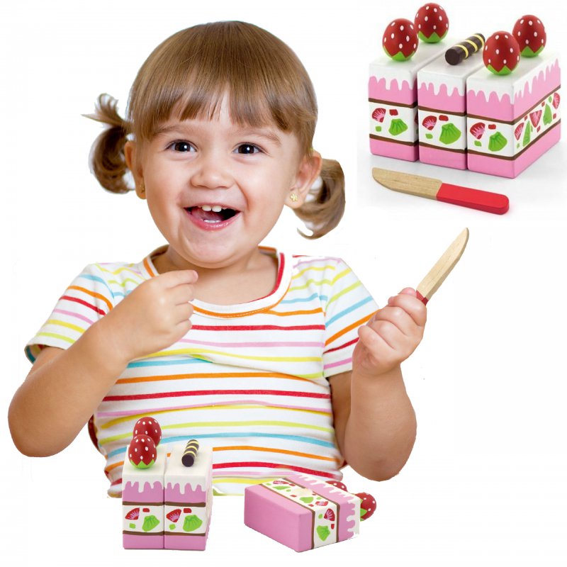 W zestawie maluch znajdzie ciasto składające się z trzech części oraz bezpieczny dla dziecka, drewniany nóż. Taka zabawa będzie świetnie wpływała na rozwój dziecka, na zdolność logicznego myślenia, kreatywność, pobudzi jego wyobraźnię oraz pozytywnie wpłynie na inteligencję emocjonalną.