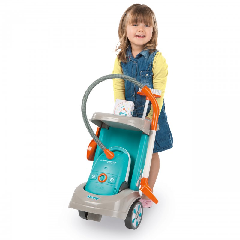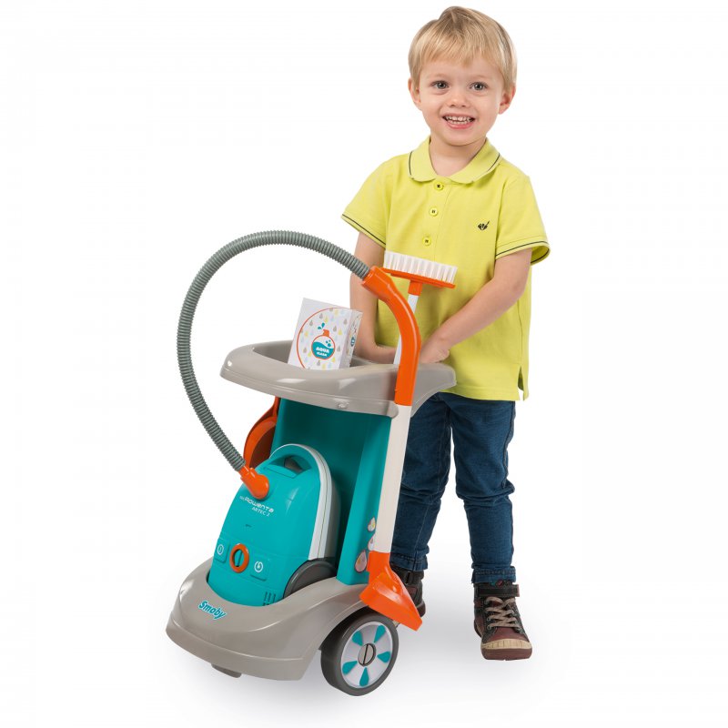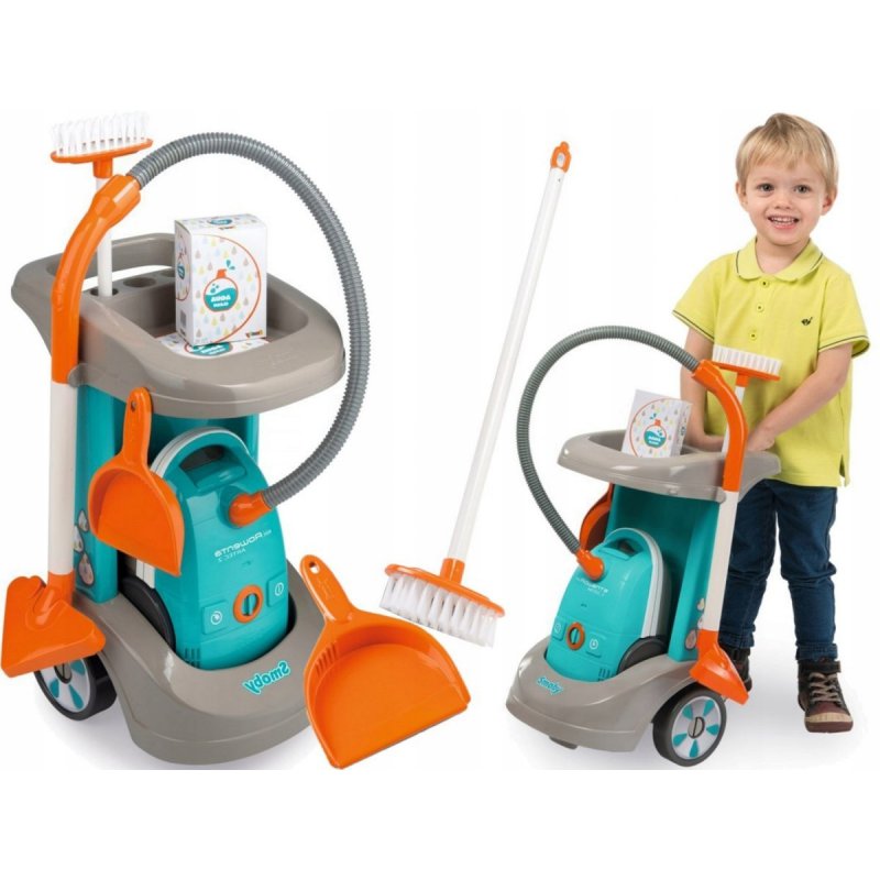 Zestaw sprzątający z odkurzaczem of firmy Smoby, cenionego producenta zabawek dla dzieci, to wspaniała zabawka - doskonałe uzupełnienie gospodarstwa domowego każdej małej gospodyni. Dzięki małej wadze odkurzacz z realistycznym dźwiękiem jest łatwy w obsłudze dla dzieci.