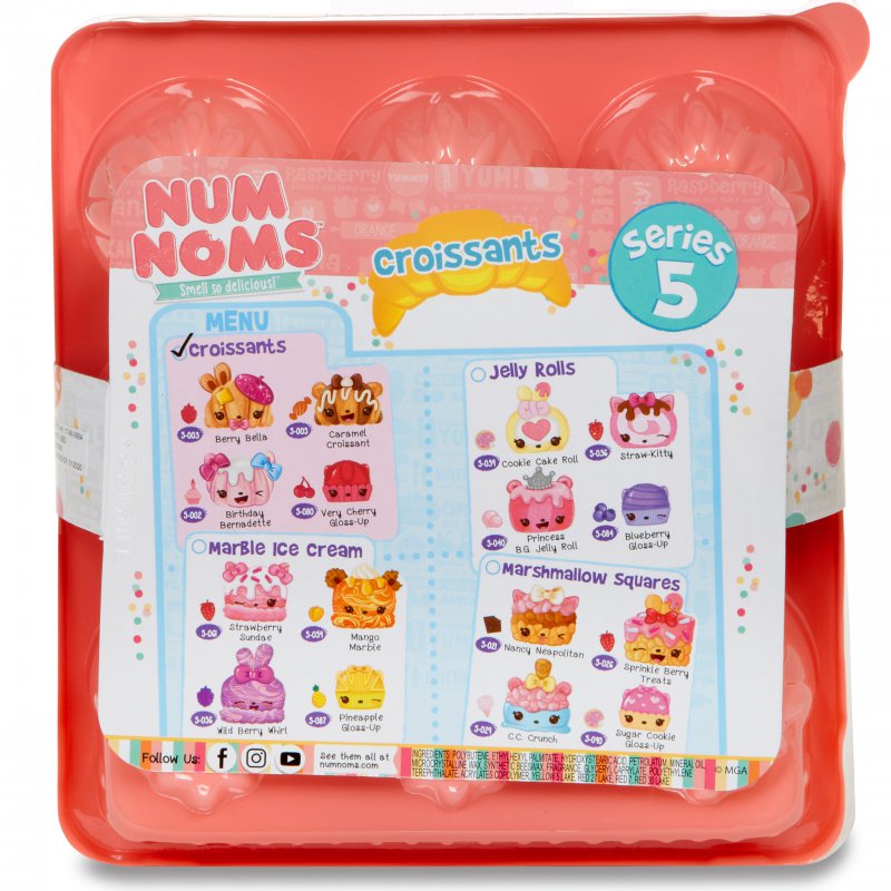 W opakowaniu znajdziemy 3 zapachowe Numy (Berry Bella, Caramel Croissant, Birthday Bernadette) oraz 1 zapachowy Nom (Very Cherry Gloss-Up), który jest teraz zapachowym i brokatowym błyszczykiem do ust.