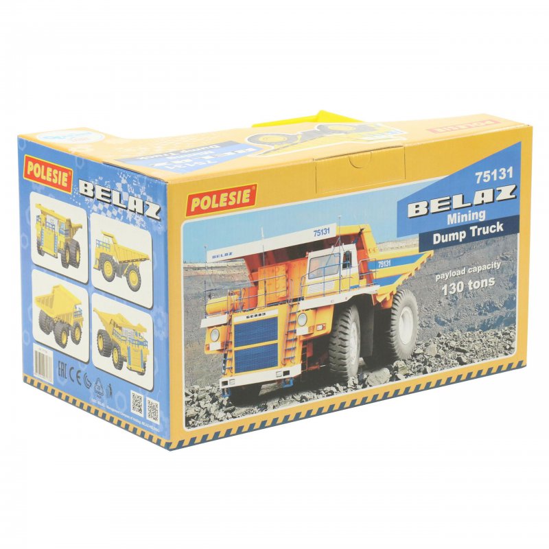 Belaz Wywrotka wyposażona jest w ruchomą skrzynię ładunkową, którą można podnieść i w łatwy sposób opróżnić. Produkt został wyprodukowany na licencji Belaz, więc przypomina pojazdy poruszające się po prawdziwych budowach.