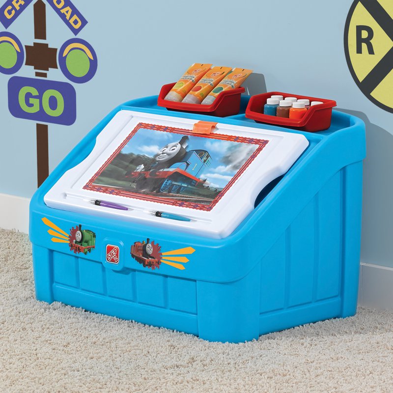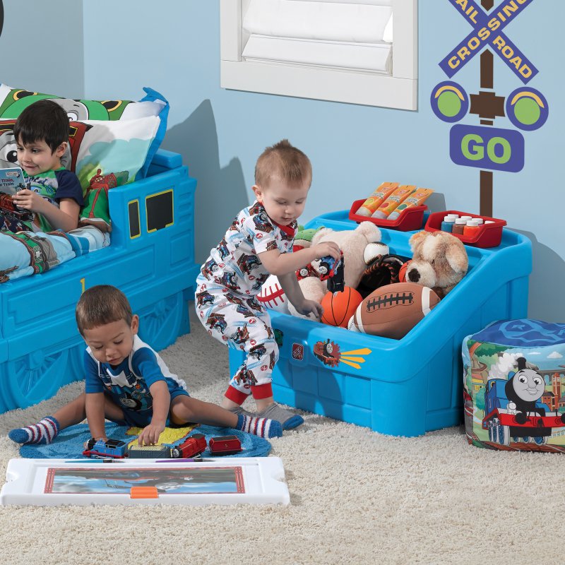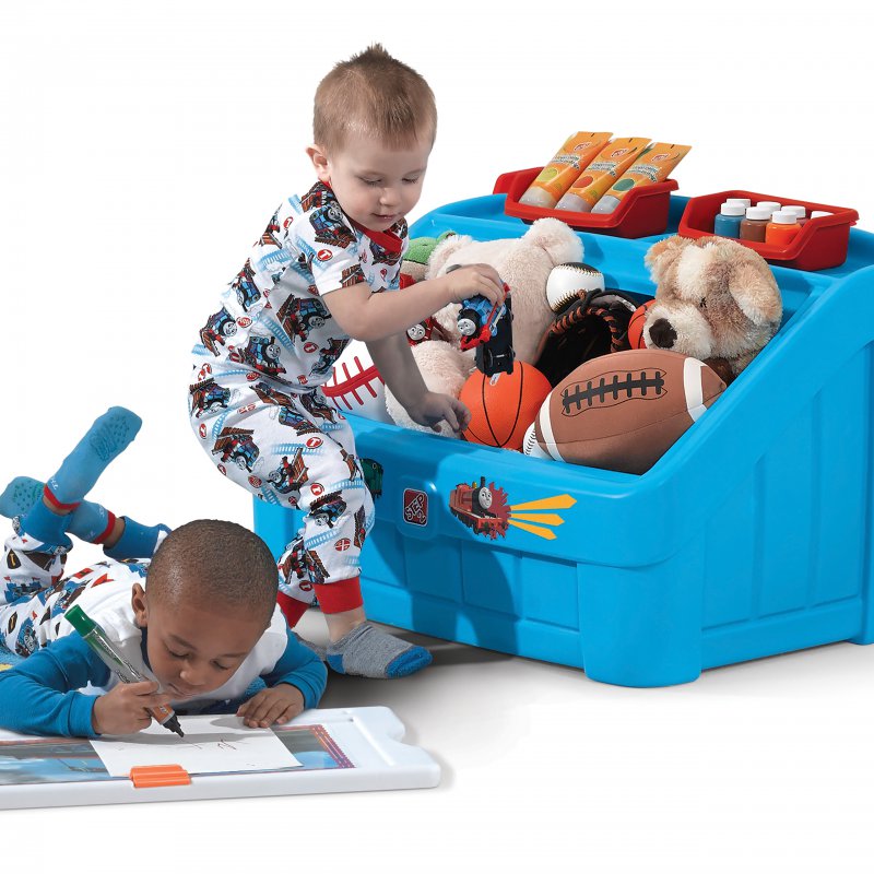 Skrzynia do przechowywania zabawek zaprojektowana przez amerykańskiego producenta Step 2 na licencji Tomek i Przyjaciele idealna do przedszkola lub pokoju dziecka.