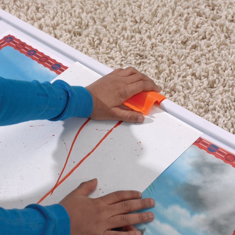 Zdejmowana pokrywa może służyć jako plansza do gier, podkładka do prac plastycznych, miejsce do układania puzzli itp.