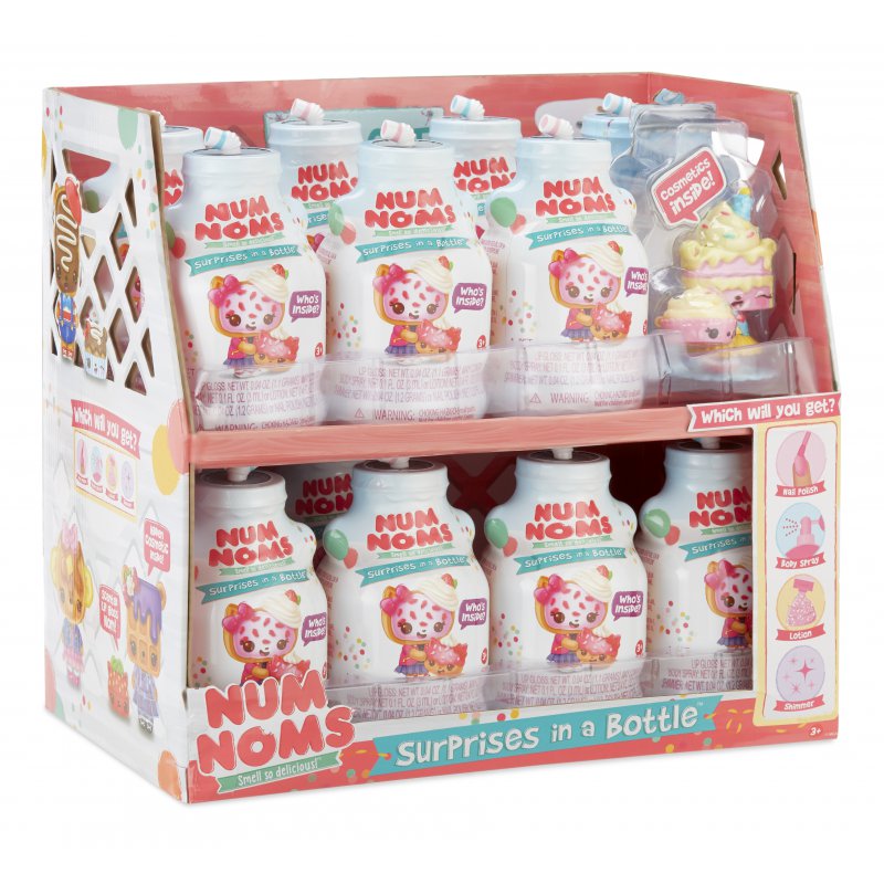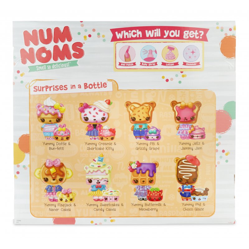 Num Noms Mystery Makeup Suprise seria 1.1 to magiczna buteleczka, które skrywa w sobie słodziaka z barwnej kolekcji, oraz błyszczyk Nom. Każdy Num i Noms to niespodzianka - kształt figurki poznasz dopiero po otwarciu wieczka. Dodatkowo każda figurka skrywa w sobie mgiełkę do ciała, balsam, lakier do paznokci lub połysk.