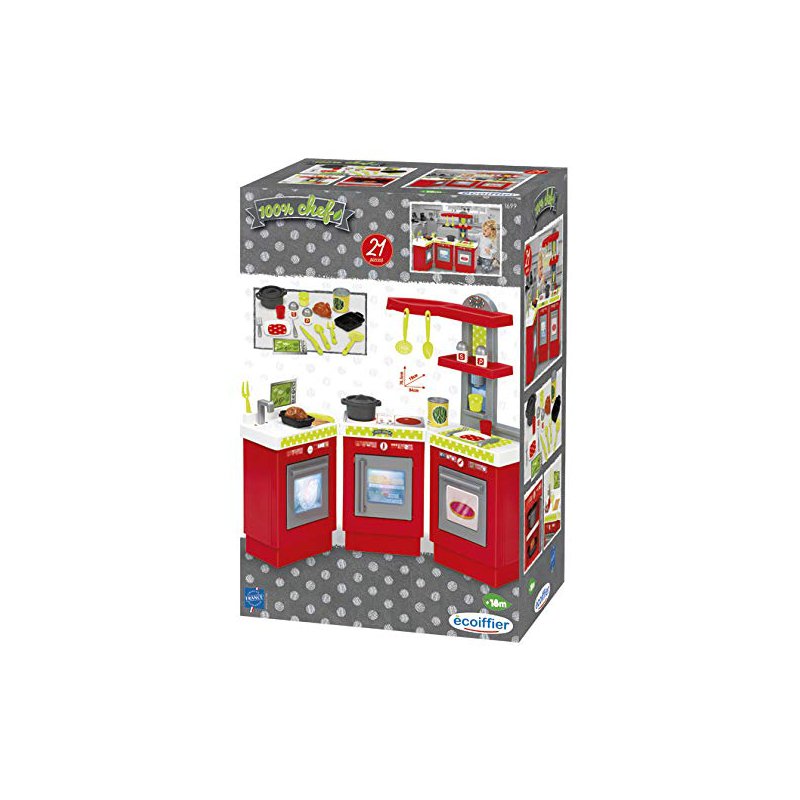 Świetna kuchnia składająca się z trzech modułów przypadnie do gustu każdemu małemu kucharzowi. Wyposażona jest w 21 dodatkowych akcesoriów. Dzięki dużym rozmiarom z kuchni może korzystać więcej niż tylko jedno dziecko. Kuchnia posiada trzy funkcjonalne mniejsze blaty, na którym dzieci będą mogły przygotowywać wyśmienite posiłki. Kuchnię można ustawić na 3 różne sposoby tak, by dopasować ją do preferencji małego kucharza i jego pokoju.
