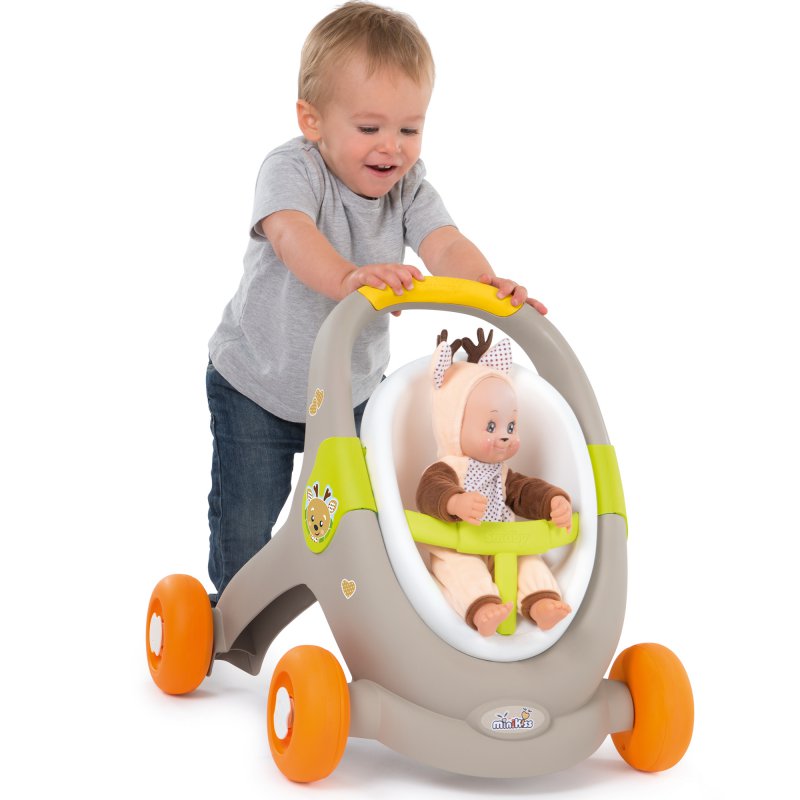 Smoby MiniKiss Chodzik Pchacz 3w1 Wózek + Lalka w Stroju Jelonka