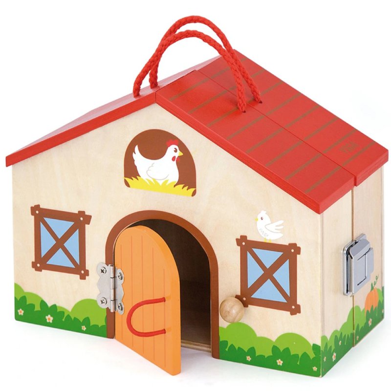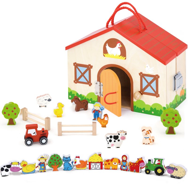 Drewniana farma została zaprojektowana przez renomowaną firmę Viga. Dom znajdujący się na farmie posiada otwierane drzwi i można go rozłożyć. W stajni znajdziemy zwierzęta takie jak: świnki, koniki, gąski oraz krówki i inne Na podłożu farmy znajdziemy figurki drzew oraz zagrody.