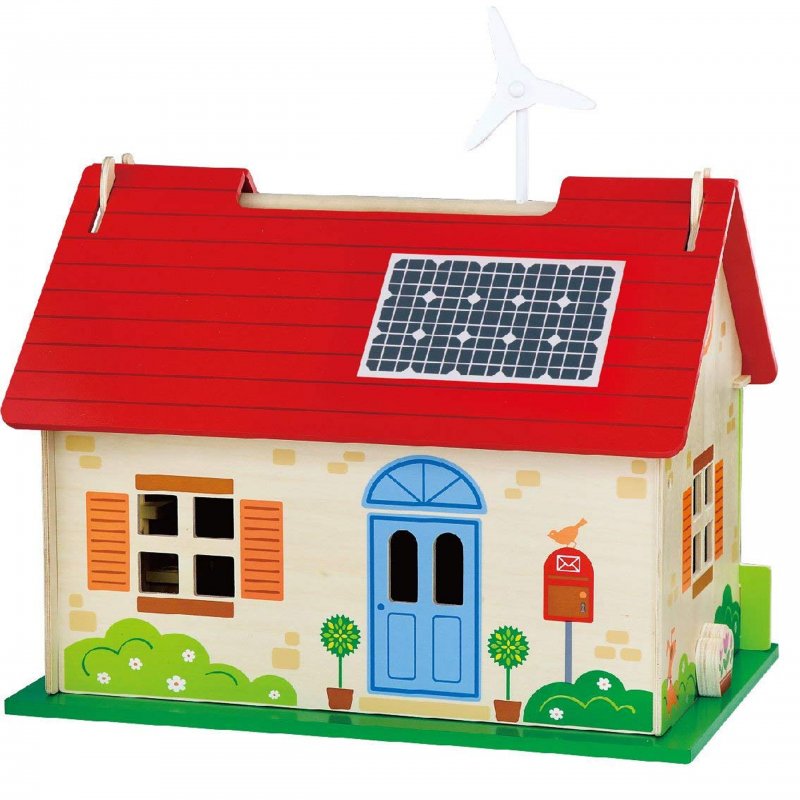 Drewniany domek od firmy Viga to idealny prezent, który ucieszy każde dziecko. Wspaniała 2 piętrowa willa, w której mieszkają dwie laleczki będzie idealnym prezentem zarówno dla chłopca jak i dziewczynki. Ekologiczny domek ma otwierany dach, przez który można zaglądać do pomieszczeń, taką samą możliwość daje nam otwierana ściana – która po otworzeniu staje się ogródkiem. W zestawie poza laleczkami maluchy znajdą tam także mebelki oraz panel słoneczny i wiatrak – dzięki którym dzieci od najmłodszych lat będą się uczyły dbania o środowisko.