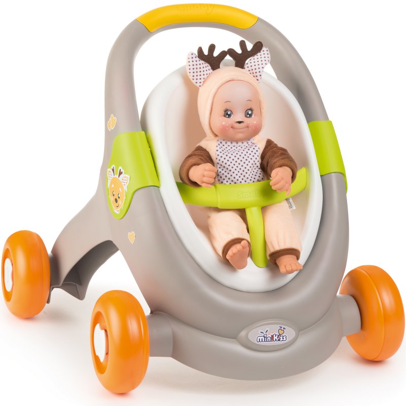 Smoby MiniKiss Chodzik Pchacz 3w1 Wózek + Lalka w Stroju Jelonka + Lisek do ciągnięcia - PolarB