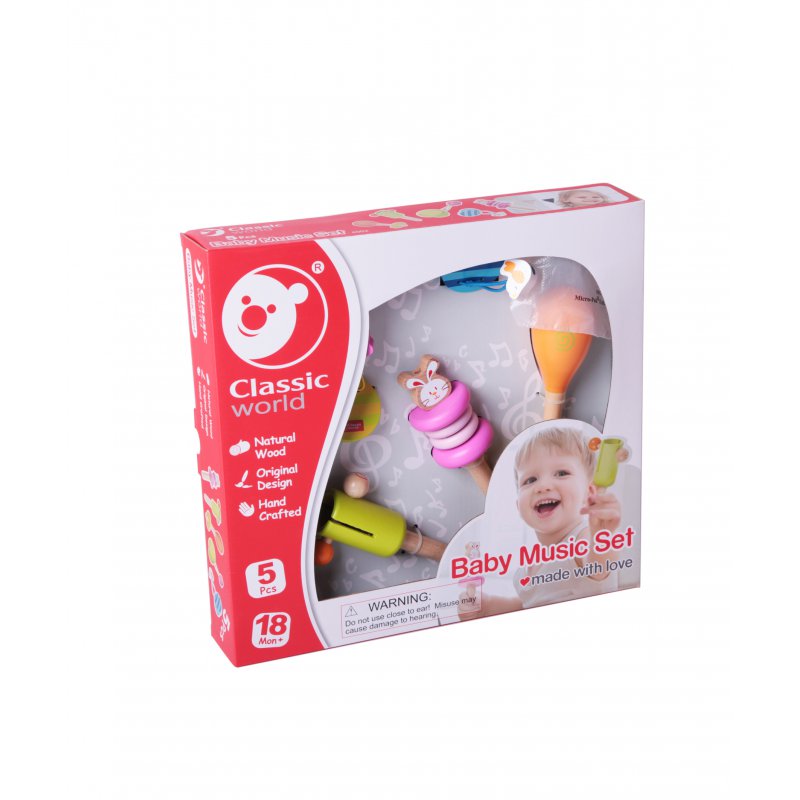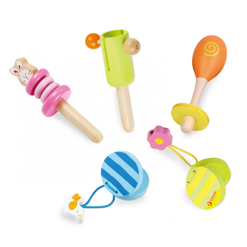 Zestaw Muzyczny Dla Maluszków Drewniany Kastaniety Marakasy Grzechotka Classic World