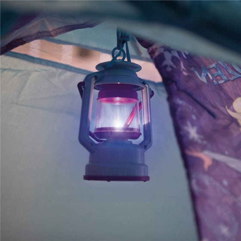 Do tego namiot został wyposażony w latarnię, która rozświetla wnętrze i ułatwią zabawę.