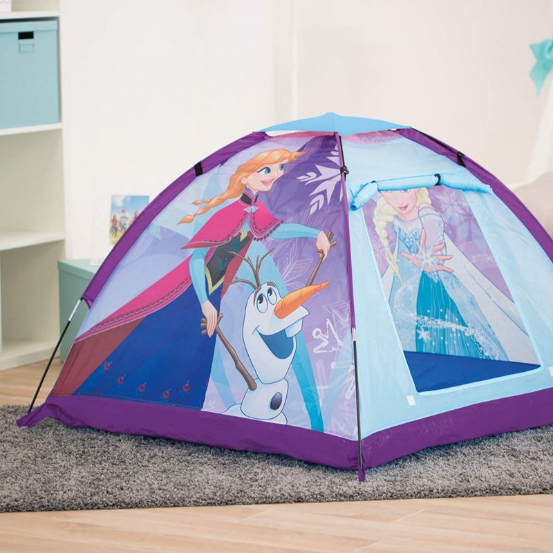 Namiot samorozkładający z wizerunkiem Anny, Elsy oraz Olafa znanych i lubianych bohaterów bajki Disney Kraina Lodu to idealny pomysł na prezent dla dzieci.
