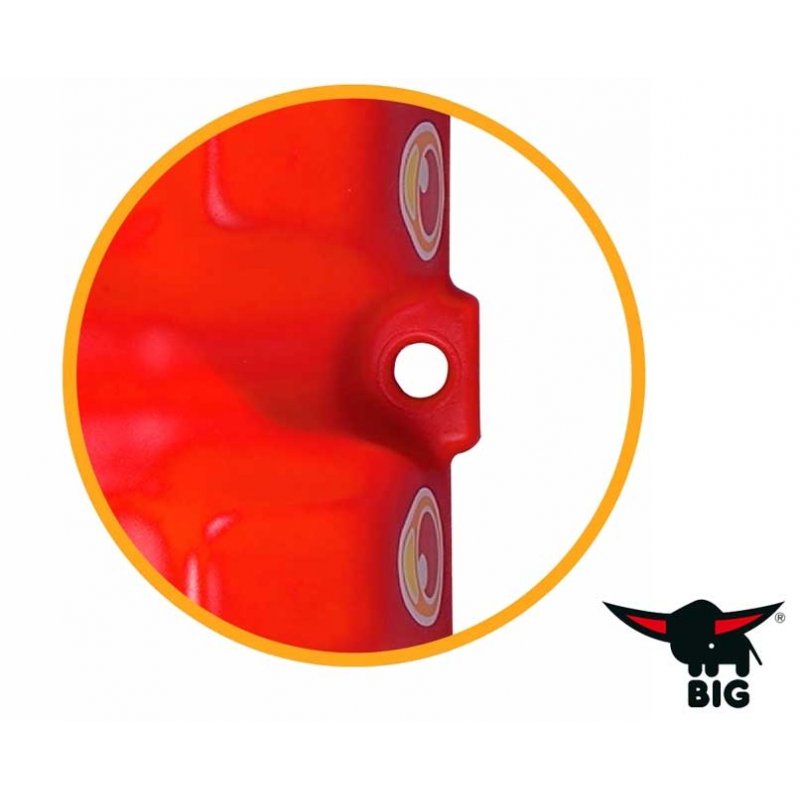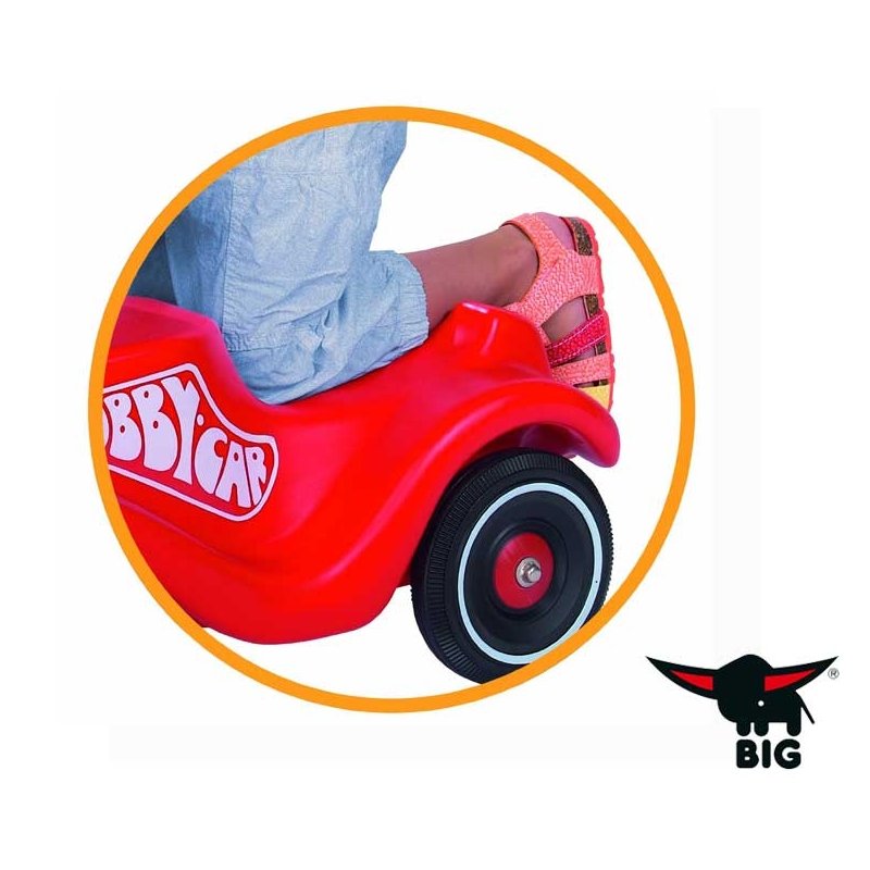 Czerwony Pojazd jest stabilny i bardzo bezpieczny. Specjalny profil siedziska pozwala na zabawę w dwóch pozycjach siedząc lub klęcząc na jeździku. Dziecko odpychając się nogami z pewnością będzie się prawidłowo rozwijało i świetnie bawiło. Trwała konstrukcja jeździka, gwarantuje długi okres eksploatacji. Jeździk posiada specjalne plastikowe ciche koła, mechanizm holowniczy z przodu oraz hak na przyczepę, klakson. Skrętne koła gwarantują doskonałą przyczepność i sterowność. Dodatkową atrakcją daje możliwość doczepienia przyczepki BIG Bobby Car.
