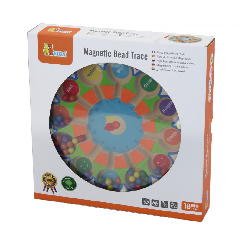 Drewniana Gra magnetyczna Zegar od firmy Viga to jedna z czołowych zabawek, która będzie służyła długo i zapewni Twojemu dziecku wiele lat ciekawej i kreatywnej zabawy. Kolorowa Gra magnetyczna zegar cieszy oko i zachęca do zabawy. Do planszy przymocowany jest magnetyczny patyczek na sznurku, za pomocą którego należy przemieszczać kuleczki.