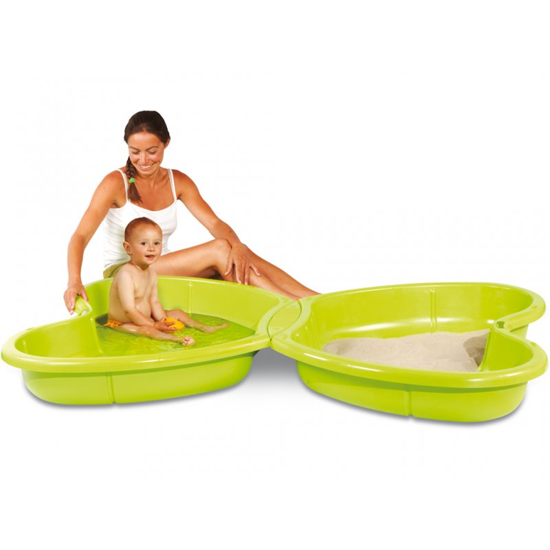 Wspaniała piaskownica o kształcie motylka. Idealna w domu i ogrodzie. Nadaje się do zabaw grupowych. Rozwija sprawność fizyczną dziecka. Idealna zabawka dla Twoich Dzieci! Rewelacja na upalne dni! Motylek piaskownica jest wykonany z wysokiej jakości tworzywa odpornego na warunki atmosferyczne i miłego w dotyku. Piaskownica posiada dwa skrzydełka o głębokości 18 cm i długości ponad metra każde połączone korpusem, który służy jako ławeczka. W jednym ze skrzydełek można umieścić piasek, do drugiego wlać wodę. W korpusie jest miejsce na podłączenie węża ogrodowego, dzięki temu uzyskać można małą fontannę wodną. Dwa skrzydełka motylka można złożyć w celu zabezpieczenia piasku i zabawek na noc lub w obawie przed pogorszeniem pogody.