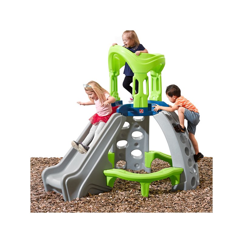 Wieża sprawnościowa Step 2 pozwoli Twoim pociechom przeżyć prawdziwie alpejską przygodę. Wspomoże również ich równowagę i koordynację podczas wchodzenia na sam szczyt i zjeżdżania w dół. Młodsze dzieci poczują się jak królowie na zamku, a kiedy zechcą odpocząć po zabawie, lub zjeść przekąskę będą mogły usiąść na wygodnych ławeczkach.