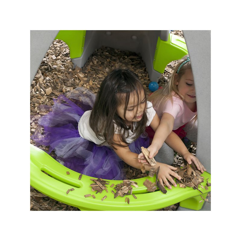 Zjeżdżalnia to tylko część atrakcji jakie czekają tu nasze dzieci. Maluchy bez wątpienia w pełni wykorzystają możliwości tego placu zabaw, wspinając się po jego ściankach i przemieszczając się poprzez specjalnie zaprojektowane otwory.