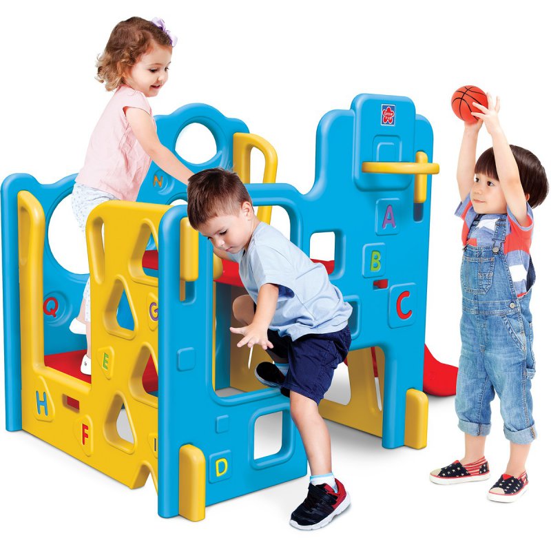Wielofunkcyjny, stabilny, plac zabaw SMOBY zawierający w sobie: zjeżdżalnię, domek, koszykówkę.. umożliwi maluchom doznawanie sportowych emocji,zapewni niezbędną porcję ruchu i rozwinie sprawność fizyczną przy jednoczesnym zachowaniu zasad bezpieczeństwa..