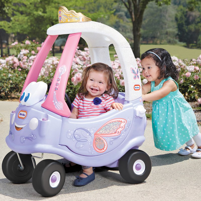 Jeździk Cozy Coupe Wróżka w kolorze fioletowym został wyposażony w kierownicę z klaksonem. Nisko położony środek ciężkości pozwala na bezpieczną i pewniejszą naukę pierwszych „kroków” na jeździku. Dodatkowo przednie kółka obracają się o 360º dla wygodniejszego prowadzenia i skręcania.