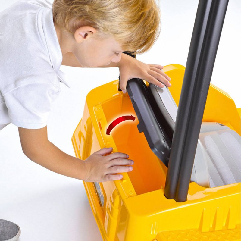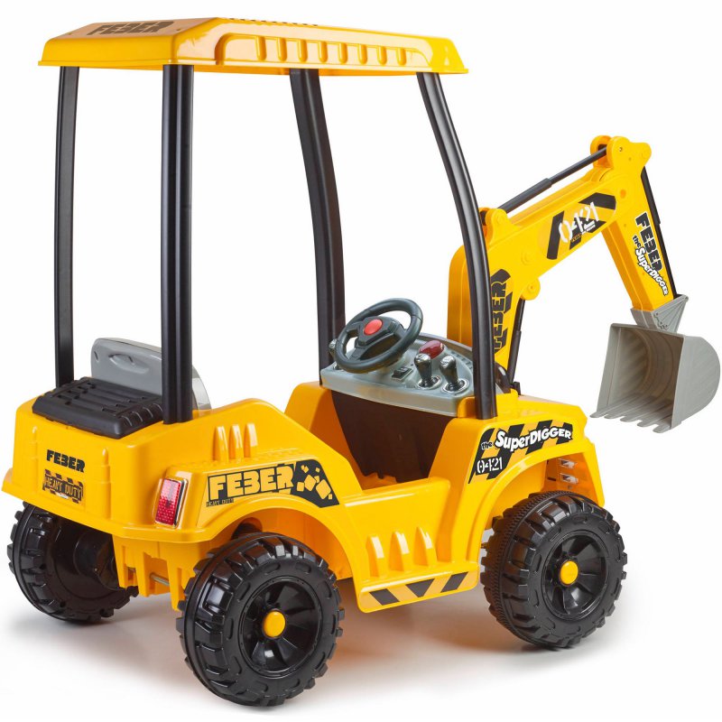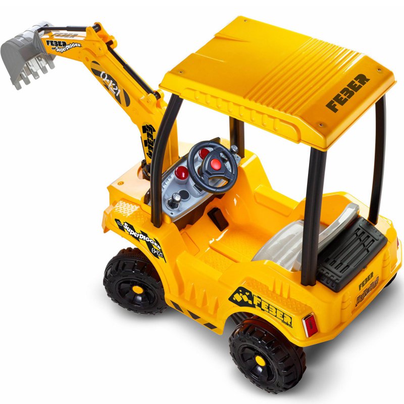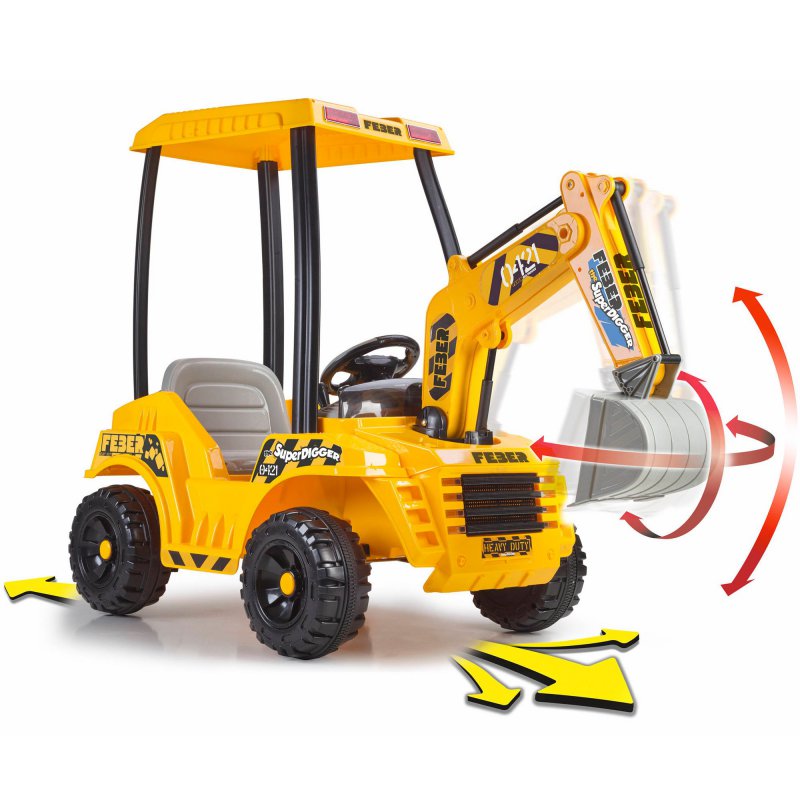 Mocny akumulator 12V zapewni długą zabawę i pozwoli na jazdę z prędkością do 3,2 km/h. Gaz i hamulec znajduje się w jednym pedale - wystarczy go puścić aby zatrzymać koparkę! Ramie koparki porusza się w lewo, w prawo oraz do góry i do dołu. Pojemny schowek z tyłu koparki z pewnością przyda się do przewożenia zabawkowych narzędzi i innych drobiazgów.