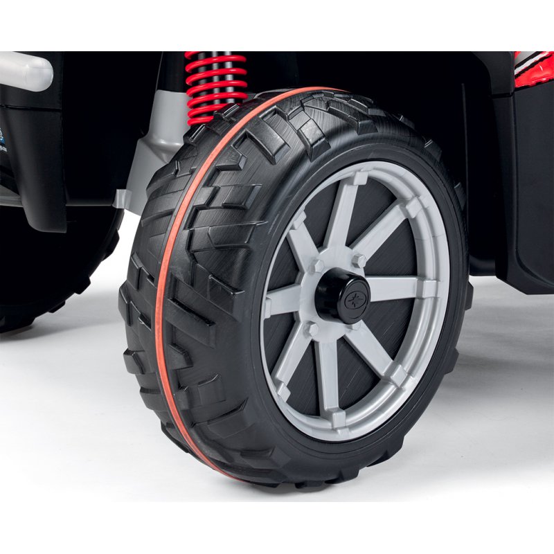 Ogromny quad na akumulator 24V na licencji Polaris Sportsman od włoskiej firmy Peg Perego. Wyprodukowany na podstawie najnowszych technologii oraz najwyższych norm bezpieczeństwa.