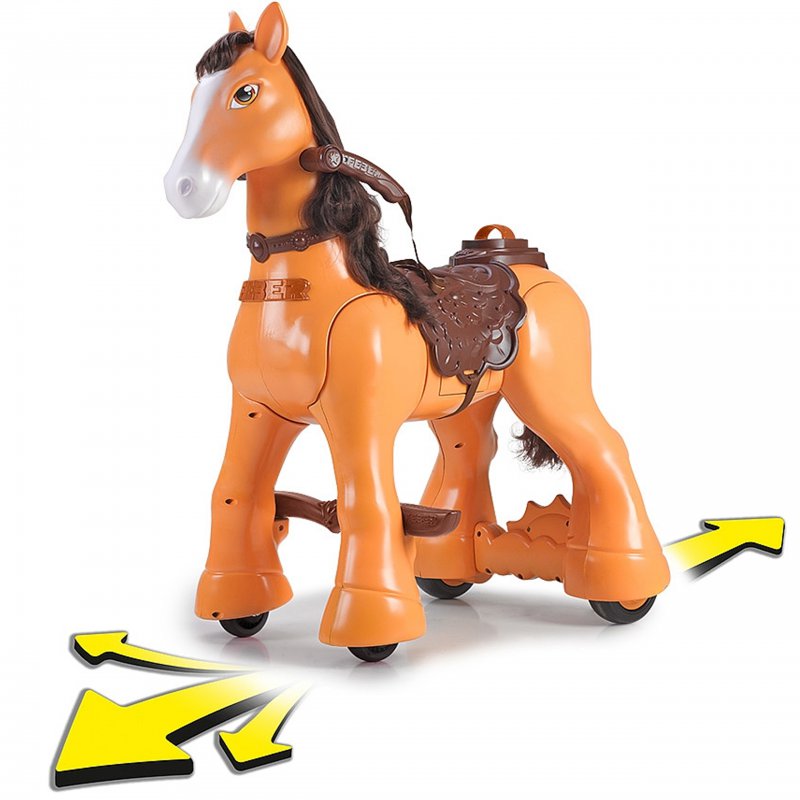 Usiądź na elektrycznego konia i poruszaj się na nim, dzięki lejcom można sterować do przodu i do tyłu oraz skręcać w lewo i w prawo. Podczas jazdy koń wydaje realistyczne dźwięki, dzięki czemu jeszcze bardziej przypomina prawdziwe zwierze. W zestawie znajduje się szczotka, dzięki której dziecko będzie mogło dbać o konia, jak o prawdziwe zwierze. Taka zabawa kształtuje odpowiedzialność i empatię dziecka.