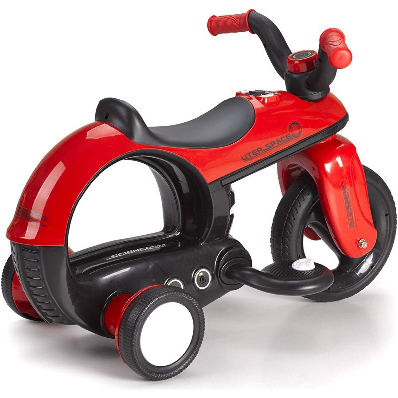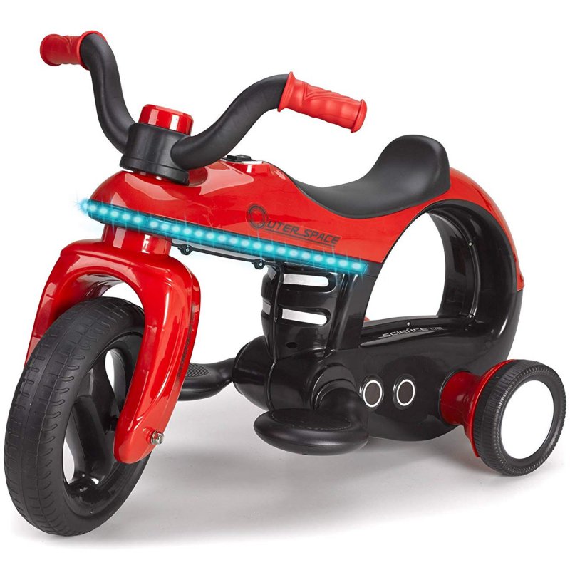Feber Space Bike to elektryczny motocykl ze światłami umieszczonymi wzdłuż boków. Posiada moduł dźwiękowy, który wydaje odgłosy silnika i klaksonu. Ładowarka i akumulator w zestawie. Motorek posiada pedał gazu i elektryczny hamulec.