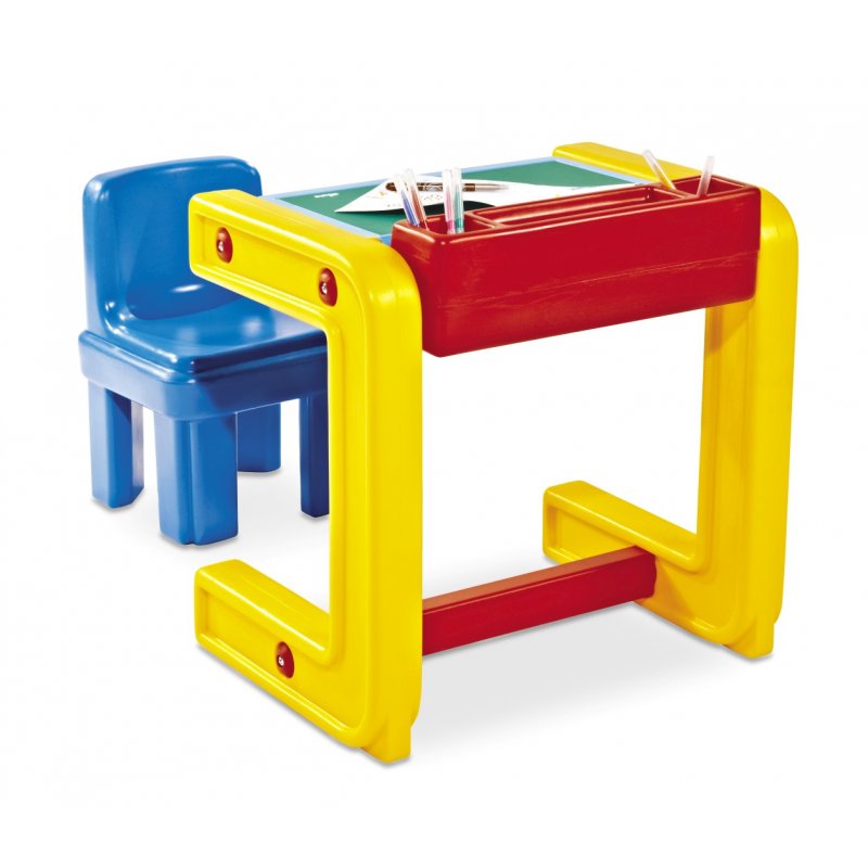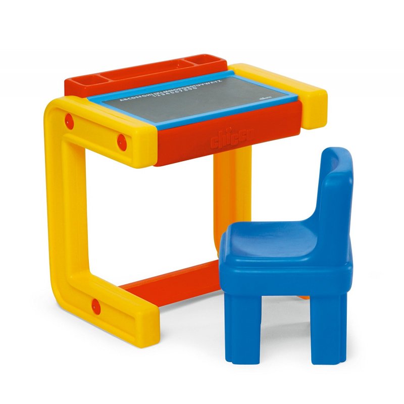 Uniwersalne i wielofunkcyjne biurko z krzesełkiem do pokoiku Twojej pociechy biurko-stolik firmy Chicco.