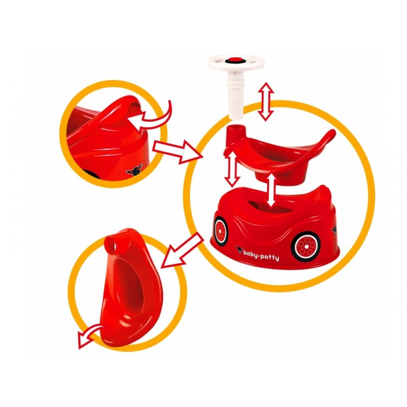 Nocniczek jest dokładnym odwzorowaniem BIG new Bobby Car i łączy maksymalny komfort siedzenia ze zintegrowaną ochroną przed pryskaniem. Pojazd posiada wysokie oparcie z praktycznym uchwytem, wyciąganą wkładkę dla łatwiejszego wypróżniania oraz zdejmowaną kierownicę z klaksonem. Dzięki temu jest wygodny, bezpieczny i sprawia mnóstwo radości.