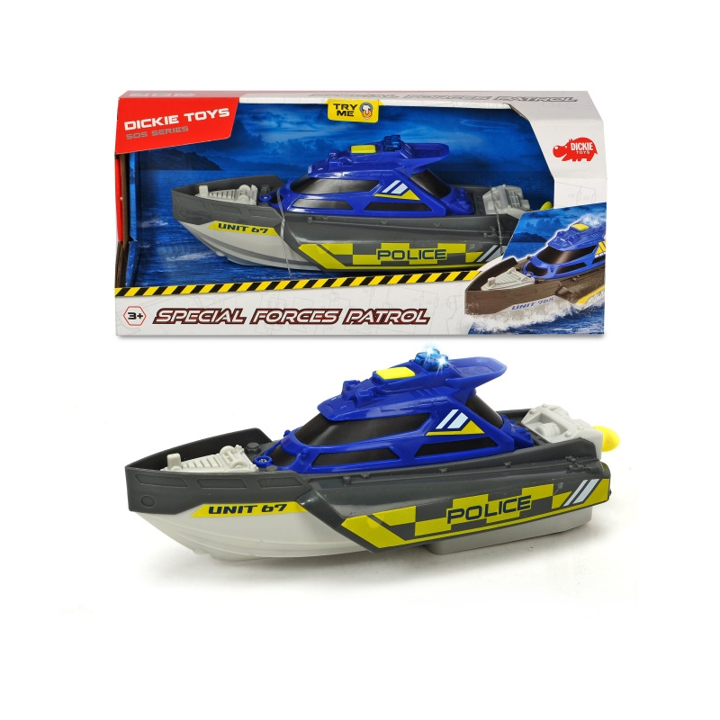 Łódź Policyjna od renomowanej firmy dickie to kolejna świetna pozycja która zapewni długie godziny zabawy. Łódź wyposażona w efekty świetlne i dźwiękowe.