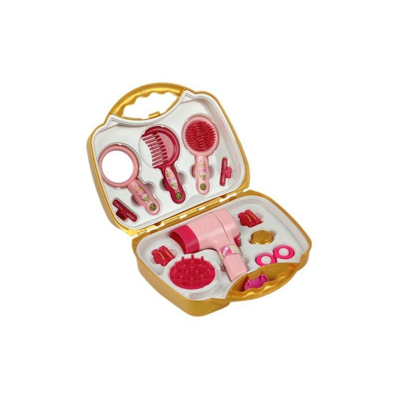 Ten zestaw małego fryzjera zamknięty został w uroczej, plastikowej walizeczce w kolorze złotym. Walizeczka posiada wygodną, wyprofilowaną rączkę, różowy zatrzask, który zabezpiecza ją przed otwieraniem się w trakcie przenoszenia, oraz biały środek z wgłębieniami na wszystkie elementy zestawu, dzięki czemu w walizeczce zawsze panuje porządek, a każde akcesorium ma swoje miejsce.