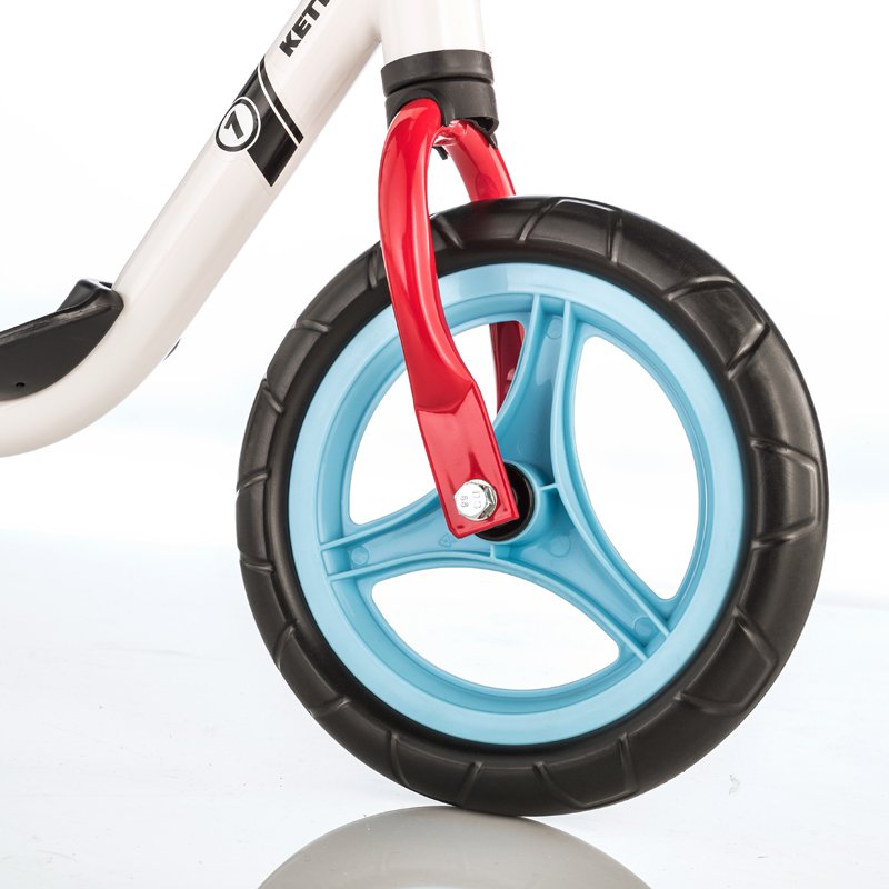 KETTLER rowerek biegowy RUNBIKE ciche koła jest wykonan ze stali. Koła 12,5” z łożyskami kulkowymi i pompowanymi oponami.