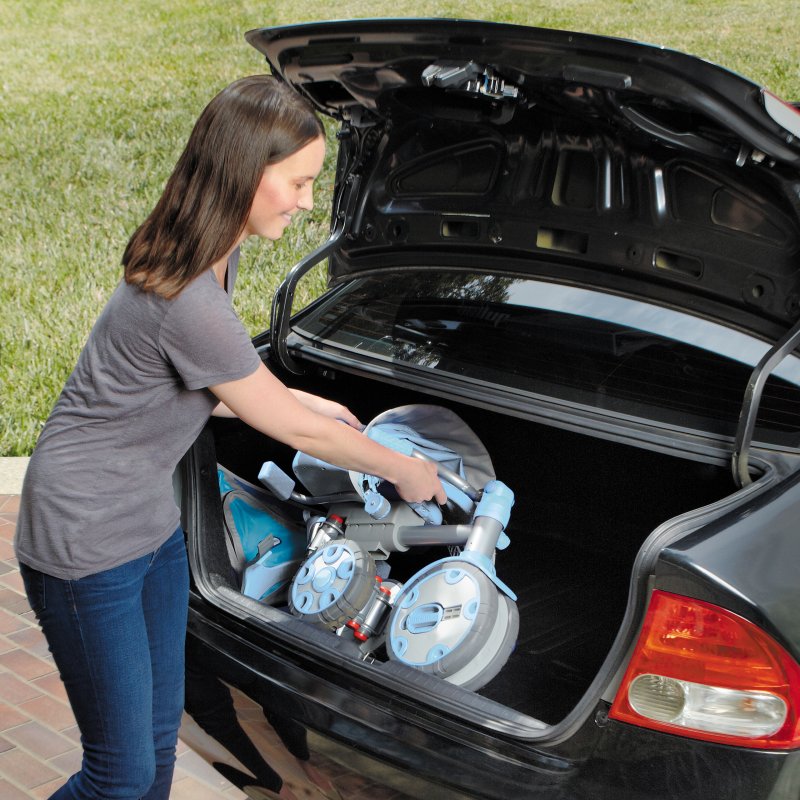 Niebieski Trójkołowy rowerek Baby Twist 4w1 dla wymagających wyposażony został w dodatkową platformę z kółeczkami, dzięki którym rowerek staje się niezwykle zwinny i daje możliwość obracania go w miejscu o 360 stopni.