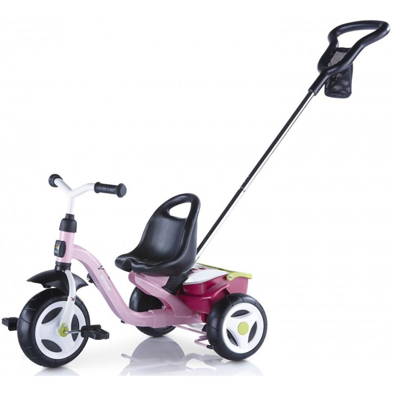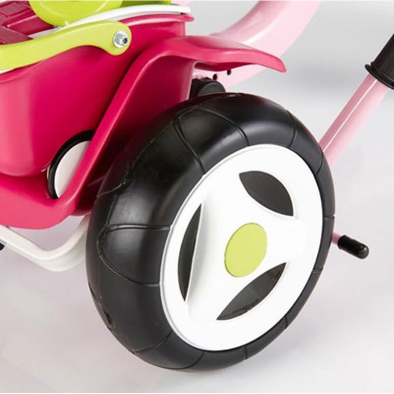 Rowerek trzykołowy Balade różowy dla dzieci od 10 miesiąca cenionego producenta zabawek francuskiej firmy Smoby.Wyposażony w ciche koła, pasy bezpieczeństwa, regulowaną rączkę zapewni komfort podczas spaceru zarówno dziecku jak i mamie.