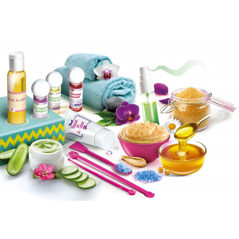 Zestaw Kosmetyki pozwoli każdej małej kosmetyczce stworzyć samodzielnie w domu kremy, czy też aromatyzowane sole, które są bezpieczne dla dzieci. Zestaw ten dostarczy dziewczynkom mnóstwo radości, a także interesującej i kreatywnej zabawy!