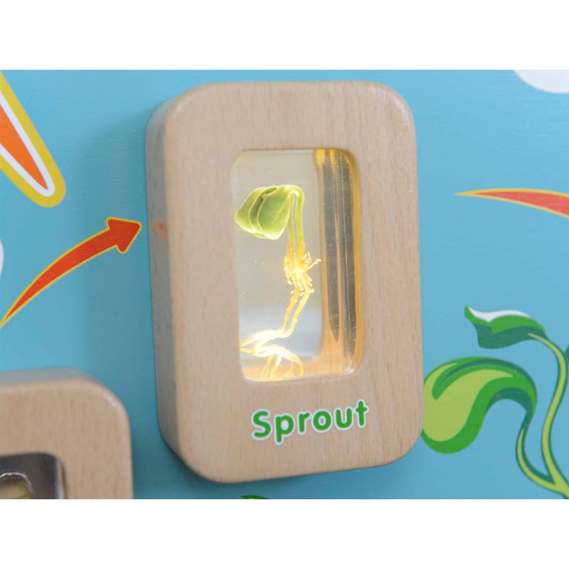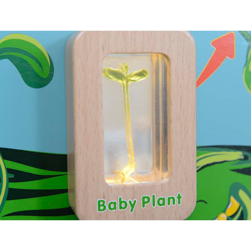 Tablica "Cykl Życia Rośliny" dziecko zrozumie, że należące do świata przyrody kwiatki i roślinki to również żywe organizmy. Maluch pozna kolejne kroki w cyklu ich życia, zobaczy na własne oczy zmiany zachodzące w roślinkach, oraz lepiej pojmie funkcjonowanie świata flory. Każdy z kolejnych kroków w cyklu życia roślinki posiada osobne podświetlenie, dzięki czemu wszystko jest doskonale widoczne w najmniejszych nawet szczegółach.