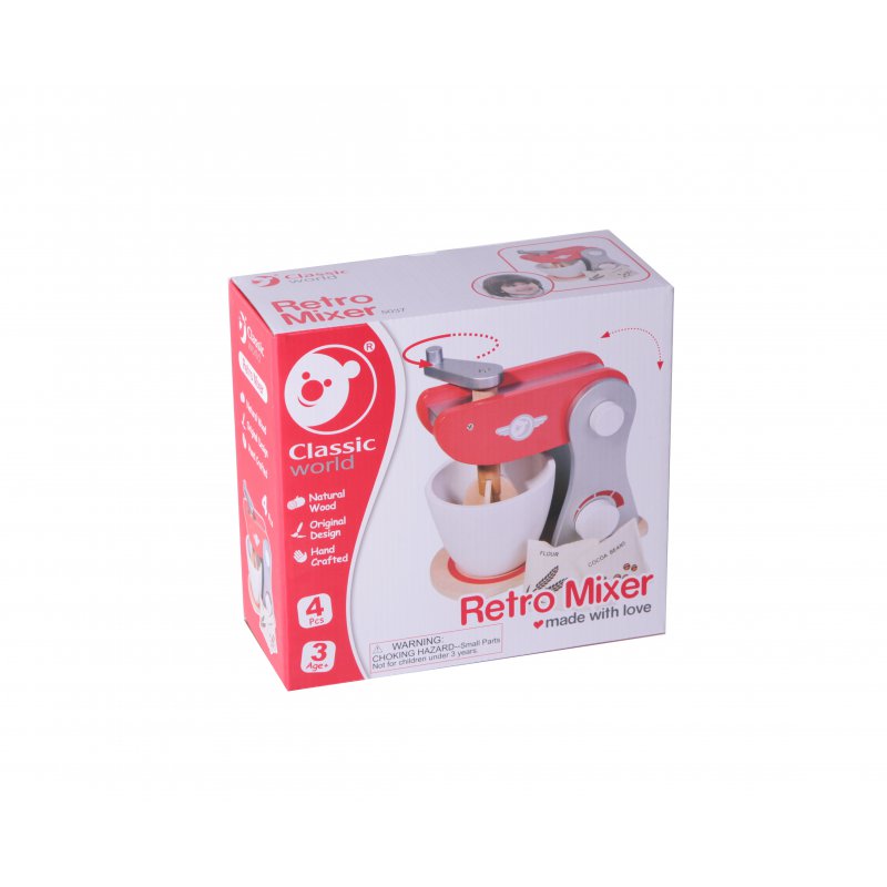 Retro Mikser to idealna zabawka dla małej gospodyni, która kocha wypieki. Świetny również jako uzupełnienie wyposażenia kuchni.