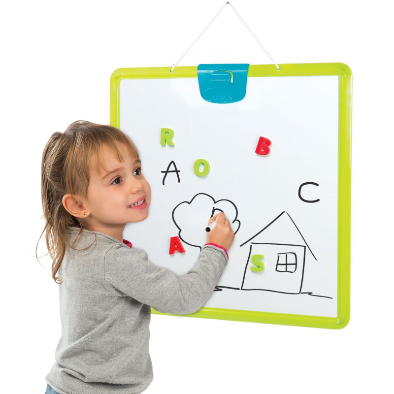 Dzieci uwielbiają bawić się w szkołę, której nieodłącznym elementem jest tablica. Dzięki niej Twoje dziecko może rozwijać swoje zdolności plastyczne oraz ćwiczyć naukę pisania. Zaprojektowana przez francuskiego producenta zabawek firmę Smoby tablica z jednej strony umożliwiająca pisanie kredą a z drugiej zawiera magnetyczną powierzchnię do pisania mazakami.