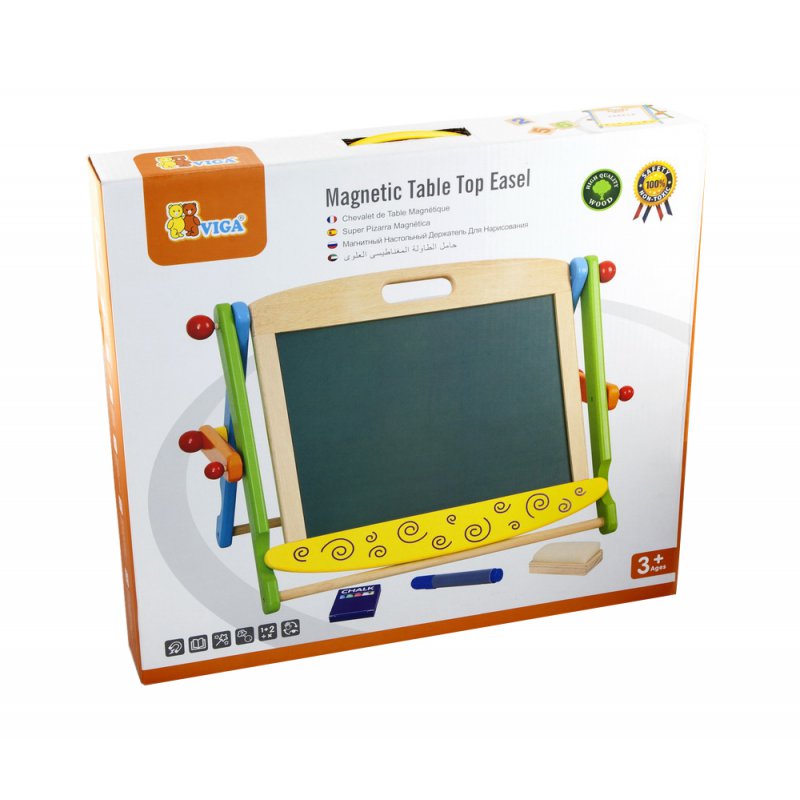 Drewniana tablica magnetyczna Dwustronna cenionego producenta zabawek Viga Toys dla dzieci od 3 roku życia idealne do przedszkola jak i do domu.