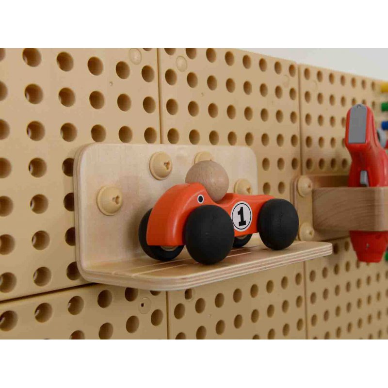 Na Tablicy Naukowo-Edukacyjnej Masterkidz STEM można eksponować przeróżne przedmioty. Mogą to być zabawki, ozdoby, lub przydatne akcesoria, które warto trzymać pod ręką w czasie zabawy. Jest to możliwe dzięki półeczkom drewnianym marki Masterkidz, które montowane są za pomocą specjalnych śrubek do tablicy STEM.
