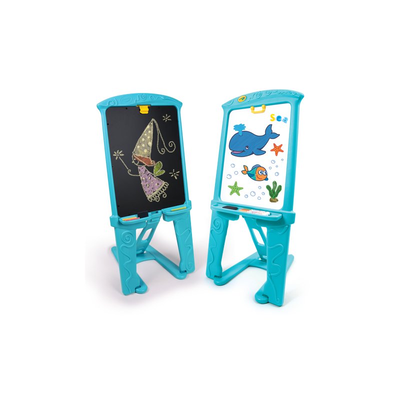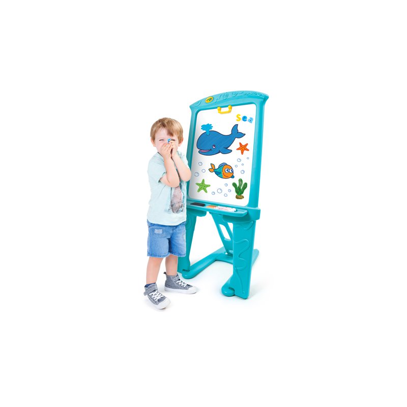 Crayola inspiruje młode umysły do odkrywania swojej kreatywności. Dwustronna Sztaluga Tablica magnetyczna i kredowa oferuje duże powierzchnie do rysowania co daje wiele możliwości dla małego artysty. Sztaluga idealnie nadaje sie do rysowania, malowania, pisania i nie tylko. Wyposażona została w rozkładaną podporę. Z jednej strony znajdziemy tablicę kredową a z drugiej tablicę magnetyczną, na której można także korzystać ze zmywalnych flamastrów. Obydwie powierzchnie są łatwe w czyszczeniu. Nad tablicami znajdują się specjalne klipsy do mocowania kartki.
