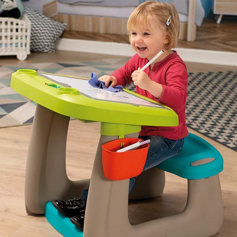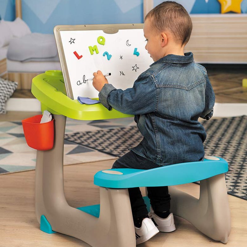 Uniwersalny i wielofunkcyjny mebelek do pokoiku Twojej pociechy - tablica-biurko-stolik renomowanej francuskiej firmy Smoby. Zabawka została tak zaprojektowana, że przyciągnie każde dziecko na wiele godzin wspaniałej zabawy.
