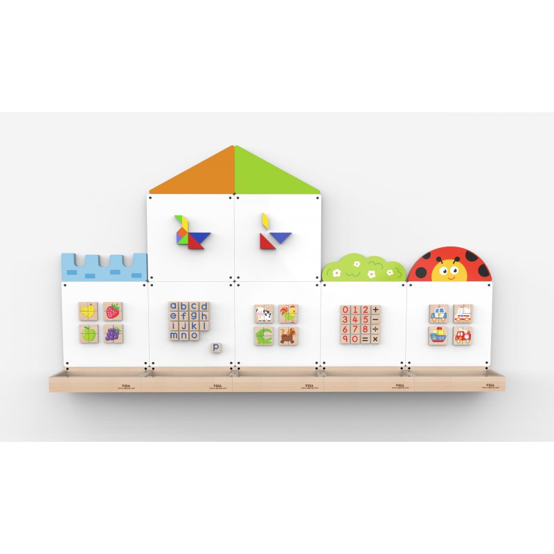 Jedna z całej serii innowacyjnych tablic ściennych, renomowanej firmy Viga. Bazą jest wielofunkcyjna, drewniana tablica, która w zależności od wybranego sposobu nauki, może pełnić funkcje tablicy sucho ściernej lub magnetycznej. Komplet mogą dopełniać magnetyczne klocki i puzzle, którym przypisane są specjalne funkcje i zamysł edukacyjny.
